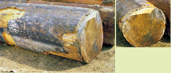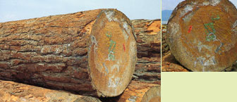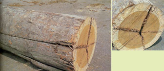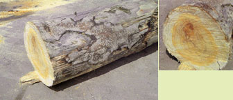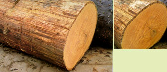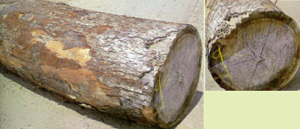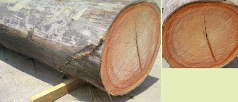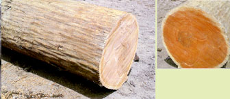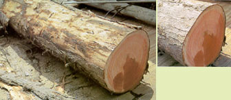 stripes clearly visible on wood surface when fresh.Outer bark dark brown or red brown with shallow